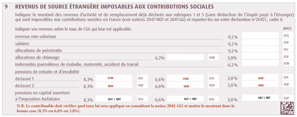 Si l’une de ces trois conditions manque, vous n’avez pas à payer ces contributions sociales françaises, ni à les déclarer dans la section 9 de l’annexe 2047 conformément aux instructions de la notice 2041-GG.